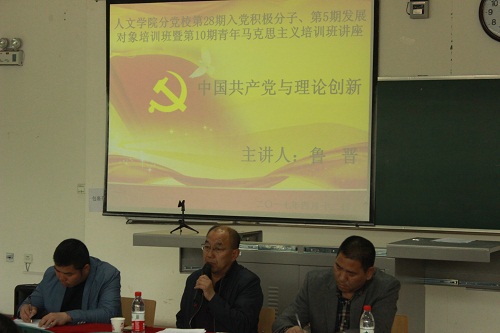 分党校第28期入党积极分子、第5期发展对象培训班暨青年马克思主义培训班开班典礼在贺兰山校区文科楼132教室成功举行。学院党委书记、分党校校长鲁晋进行了以“中国共产党与理论创新”为主题的开班第一课。学院党委副书记金玉河,14级辅导员李斌及人捕鱼大作战