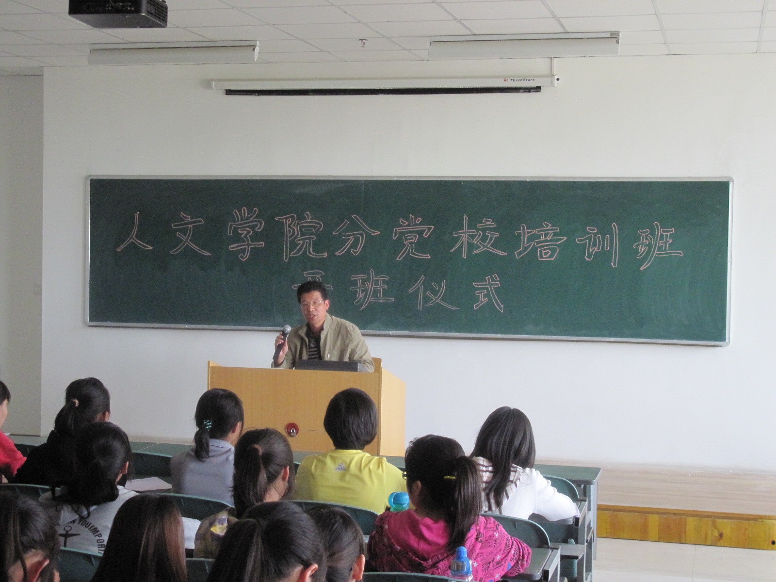 党总支书记高石钢老师为参加业余党校培训的同学作题为《端正入党动机,严格按照党员标准要求自己,争取早日加入中国共产党》的讲座。 高书记从如何成为一名合格党员的角度入题,结合自身党建工作的实际,详细阐述了如何端正、树立正确的入党动机,以及如何正确对待党员标准并按照党员标准严格要求自己等三个方面的内容。他说,在日常生活中当代大学生应当通过刻苦学习,努力做到理论和实践相结合,不断改造自己的主观世界,追求精神世界的不断净化,从而树立正确的人生观、世界观,并且与入党动机紧密结合。他还鼓励同学们在争取入党的过程中,正视党员标准,发挥自身优势,查找不足,缩小差距,按照党员标准严格要求自己。最后,高书记指出,党员的标准并不是高不可攀,同学们应自觉接受党组织的教育和考察,要以实际行动争取早日入党。 党课讲座由学院党总支副书记陈珂主持,学办李斌老师参加。 |