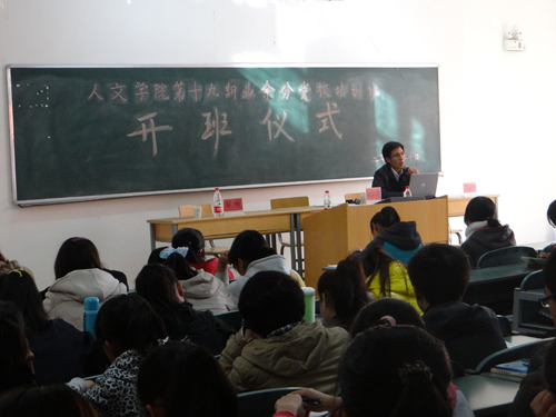参加第十九期业余党校培训班的入党积极分子作题为《青年大学生和中国共产党》的讲座。讲座围绕“中国共产党与中华民族的发展关系”和“青年知识分子与中国共产党的联系”两个方面展开。