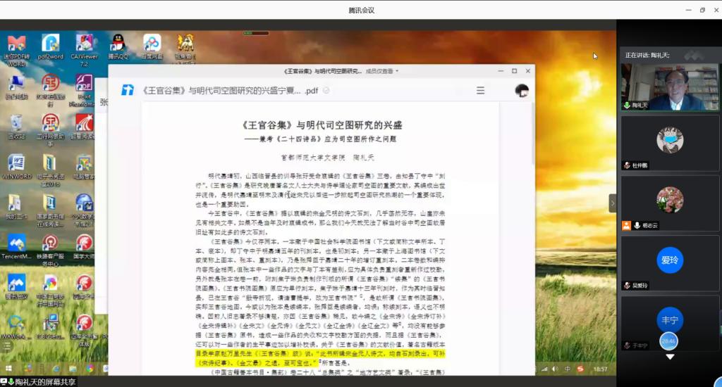 于腾讯会议平台举行了题为《<王官谷集>与明代司空图研究的兴盛——兼考<二十四诗品>应为司空图所作之问题》的学术讲座。本次讲座特邀中国《文心雕龙》学会副会长、首都师范大学捕鱼大作战