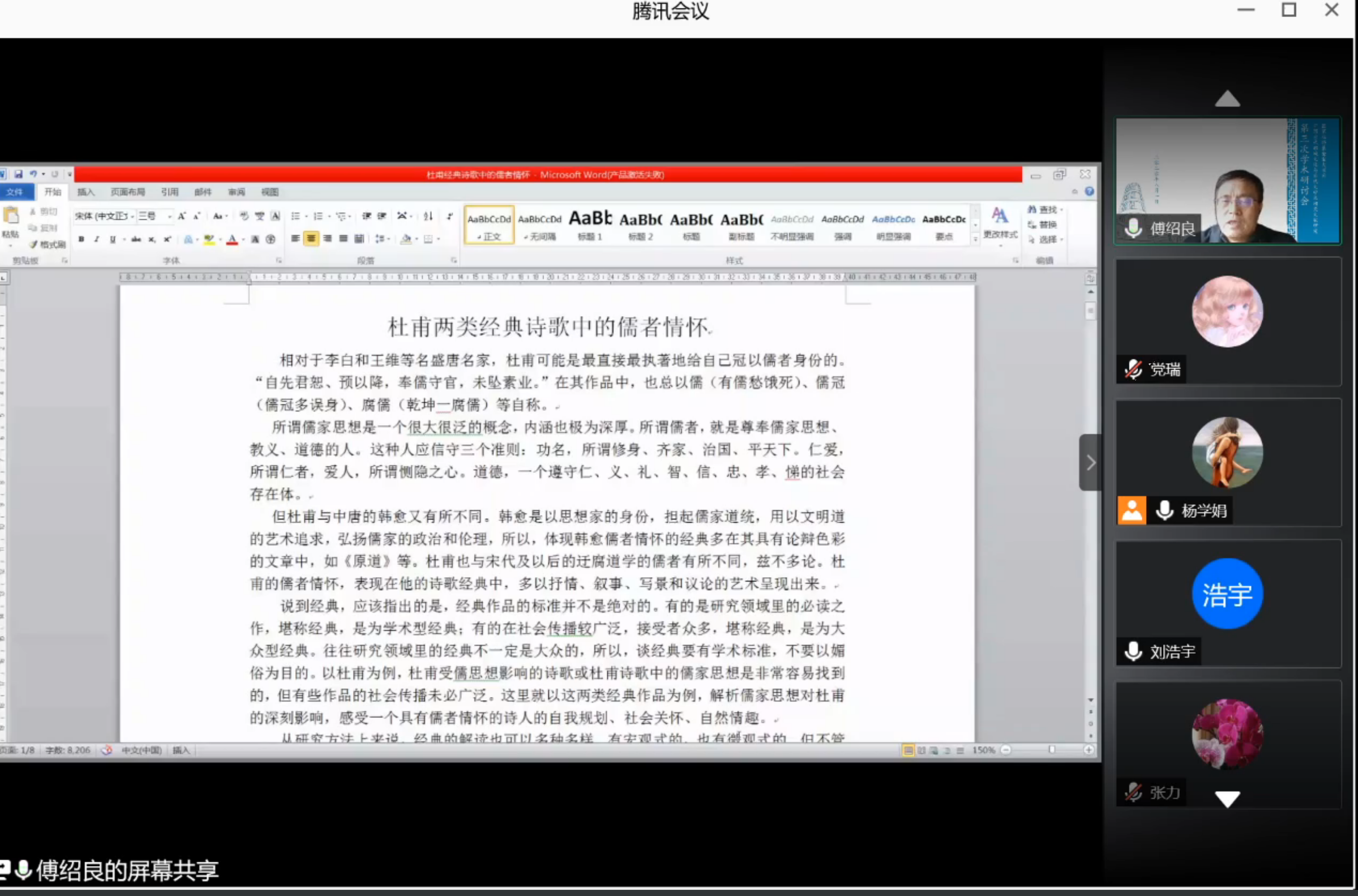 于腾讯会议平台举行了题为“杜甫二类经典诗歌中的儒者情怀”的学术讲座。