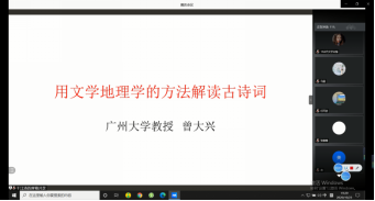 10月23日晚,题为“用文学地理学的方法解读古诗词”的讲座在腾讯会议平台举行,广州大学人捕鱼大作战