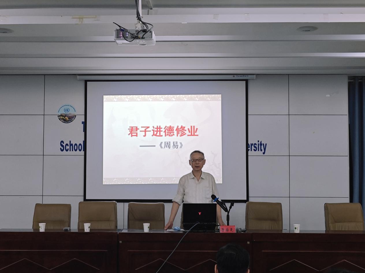 主题讲座开始前先进行了赠书仪式。胡玉冰院长向鲁国尧先生赠送《朔方文库》部分作品,对鲁国尧先生的到来表示热烈欢迎和感谢。