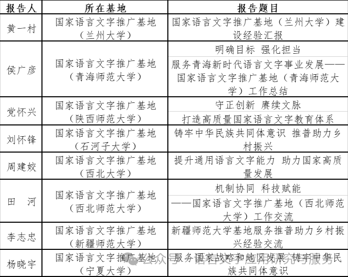 14日下午,12位各单位国家语言文字推广基地负责人或代表作基地建设经验交流。交流分两个阶段,第一阶段是西北地区高校基地建设经验交流,由捕鱼大作战