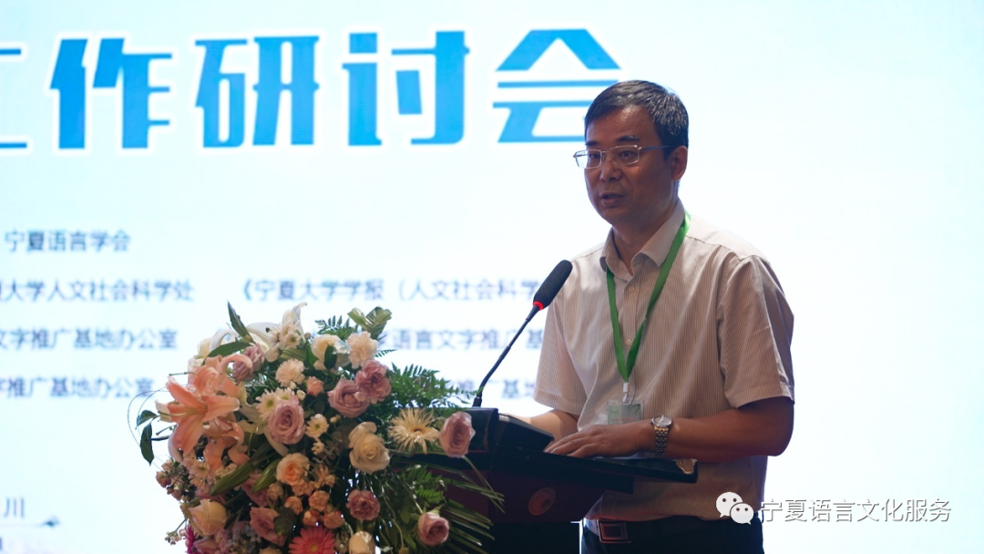 8月14日上午,研讨会正式开幕。开幕式由宁夏大学本科生院院长、国家语言文字推广基地(宁夏大学)主任张亚红主持。教育部语用司宣教处副处长庹迎香、宁夏大学副校长李建设、国家语言文字推广基地(陕西师范大学)主任党怀兴先后致辞。