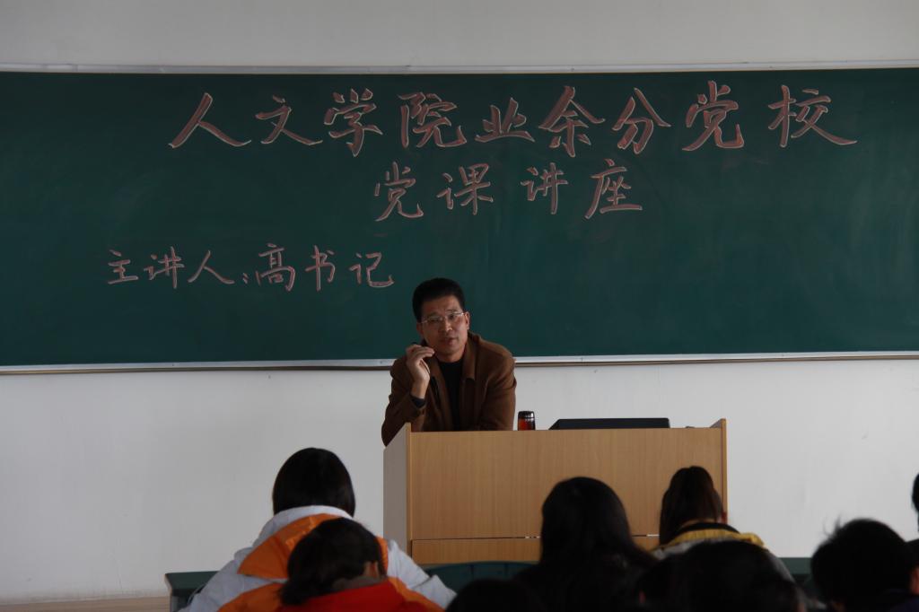 党总支书记高石钢作题为《端正入党动机,严格按照党员标准要求自己,以实际行动争取早日入党》报告。他从入党积极分子如何端正入党动机、严格按照党员标准要求自己和自觉接受党组织培养等三个方面讲述了入党前需要解决的几个理论问题。高书记鼓励在座的入党积极分子主动向党组织靠拢,虚心接受党组织的培养教育,要树立正确的入党动机,以实际行动争取早日入党,争做服务社会,服务他人的楷模。