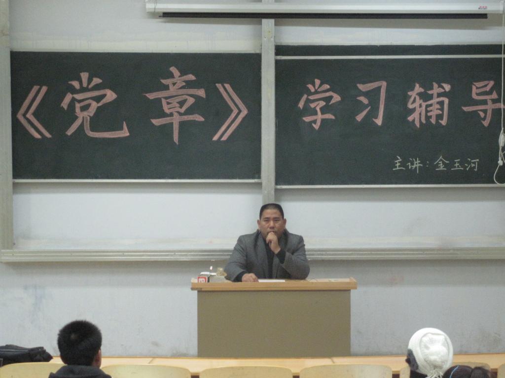 【文/张斌斌 图/余宁】1日晚7点,学院党总支副书记金玉河在校本部B区1教131教室为入党积极分子作《<中国共产党章程>学习辅导》专题讲座,学院学生工作办公室李斌老师出席并主持。