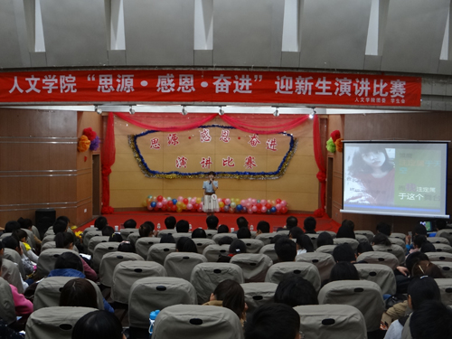 2012级 “思源·感恩·奋进”迎新生演讲比赛决赛在B区逸夫图书馆报告厅成功举办。