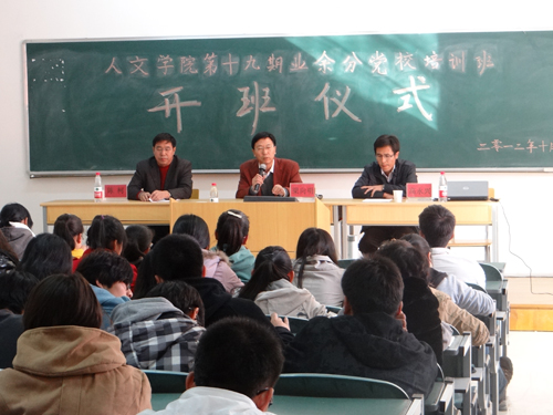 第十九期业余党校培训班开班仪式在文科楼132教室举行。学院党总支书记梁向明老师、校党委组织部副部长、学生党建办公室主任高永兴老师、出席了开班仪式。此次业余党校培训班共有来自人捕鱼大作战