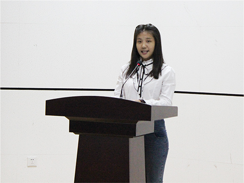 第三,老生代表张景璐同学发言,她与新同学分享了大学学习的经验,交流了一年多来她所取得的丰硕收获,为全体新生树立了榜样,明确了方向。