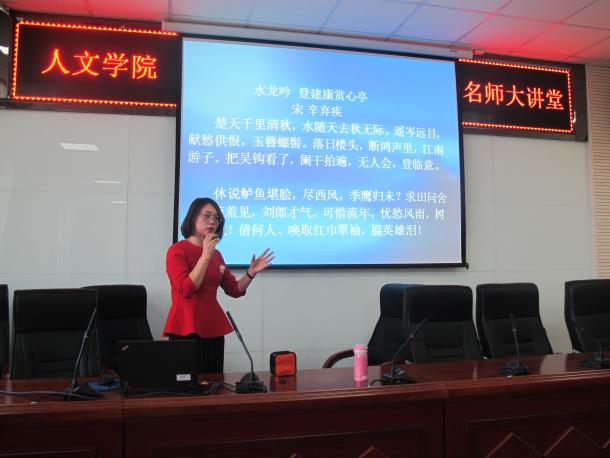 陈隽老师开门见山,以辛弃疾的《水龙吟·登建康赏心亭》为例,展示了如何品味文学作品的语言。如今很多青年教师在赏析作品时容易陷入“以写作技巧解读诗歌”的误区,每逢品读诗歌便一成不变地教给学生“情景交融”的艺术手法,而忽略了文学语言本身。陈隽老师建议讲解诗歌应进行文本细读,挖掘语言背后的画面与氤氲的情感,如此,把握诗歌艺术手法便是水到渠成的事。紧接着,她又展示出苏轼的《和子由四首·送春》一诗,分析古人“悲春伤秋”的缘由以告知在座同学:生活处处皆是诗,从生活源头中觅教学语言不失为一种好方法。陈隽老师别出心裁,在赏析《再别康桥》时,类比民歌《在那遥远的地方》,她以为不论是诗还是歌,这些语言的背后都是能够引起共鸣的情感世界。在培养语文教学语言方面,除了受益于文学作品和生活源头,还可从其他语言中借语言。