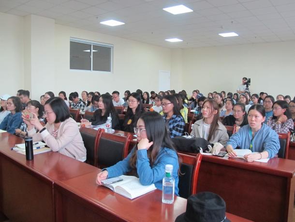 “名师大讲堂”系列讲座——“语文教学讲解语言”在文荟楼309教室顺利举行。银川二中的骨干教师陈隽再度莅临,为学科教学(语文)专业的研究生和15级汉语言文学(教师教育)的本科生带来了一场别开生面的讲座。