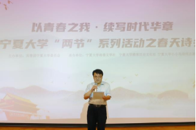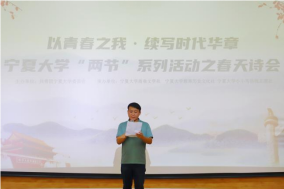 宁夏大学团委副书记胡启立作了致辞。他指出,此次“春天诗会”是我校将美育、中华文化、学校社团三者相结合的一场重大尝试。在美育培育方面,我校师生齐心协力,不断助力美育育人实效的落实,为美育传承中华民族优秀传统文化奠定良好基础。