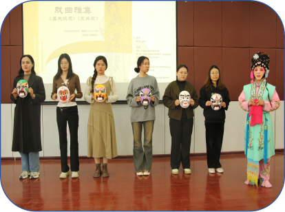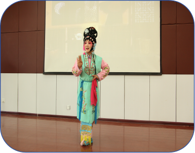 活动共三部分。第一部分是学术讲座,李九华教授作了题为《传承优秀传统文化感悟国粹艺术魅力——戏曲常识》的学术讲座。李老师从戏曲的体制、分类和变迁等角度,结合自身经历向大家讲解了相关戏曲知识,在场的同学们通过理论环节对戏曲有了更深的了解,对中华优秀传统艺术产生了好奇和兴趣,讲座也为接下来的活动开展做出了重要铺垫。