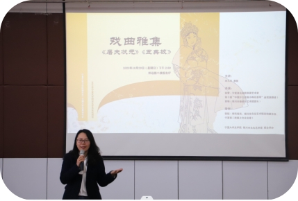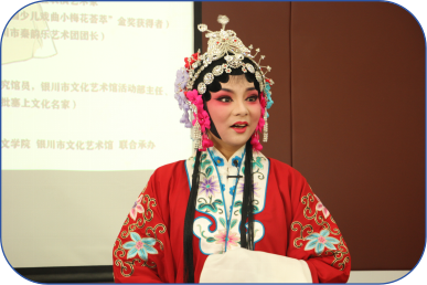 最后,刘鸿雁副院长做了总结发言,对戏曲雅集的顺利进行表示祝贺,对二位老师的精彩表演送上崇高的敬意,对银川市文化馆的大力支持表示衷心的感谢。她指出,戏曲进校园活动是一场难得的文化盛宴,是我们走近优秀传统文化的重要模式,是我们“走进”艺术殿堂的重要手段,是我们传承中华优秀传统文化的重要途经。我们要合理把握南北戏曲之间的差异性,准确认识不同剧种的表演方式和鲜明特色,认真感受戏曲文化的魅力和国粹的韵味,感知其中积淀的丰富思想内涵。要通过这样的活动,让戏曲的艺术魅力扎根在新时代青年心中,让优秀的戏曲文化得到传承和发展。