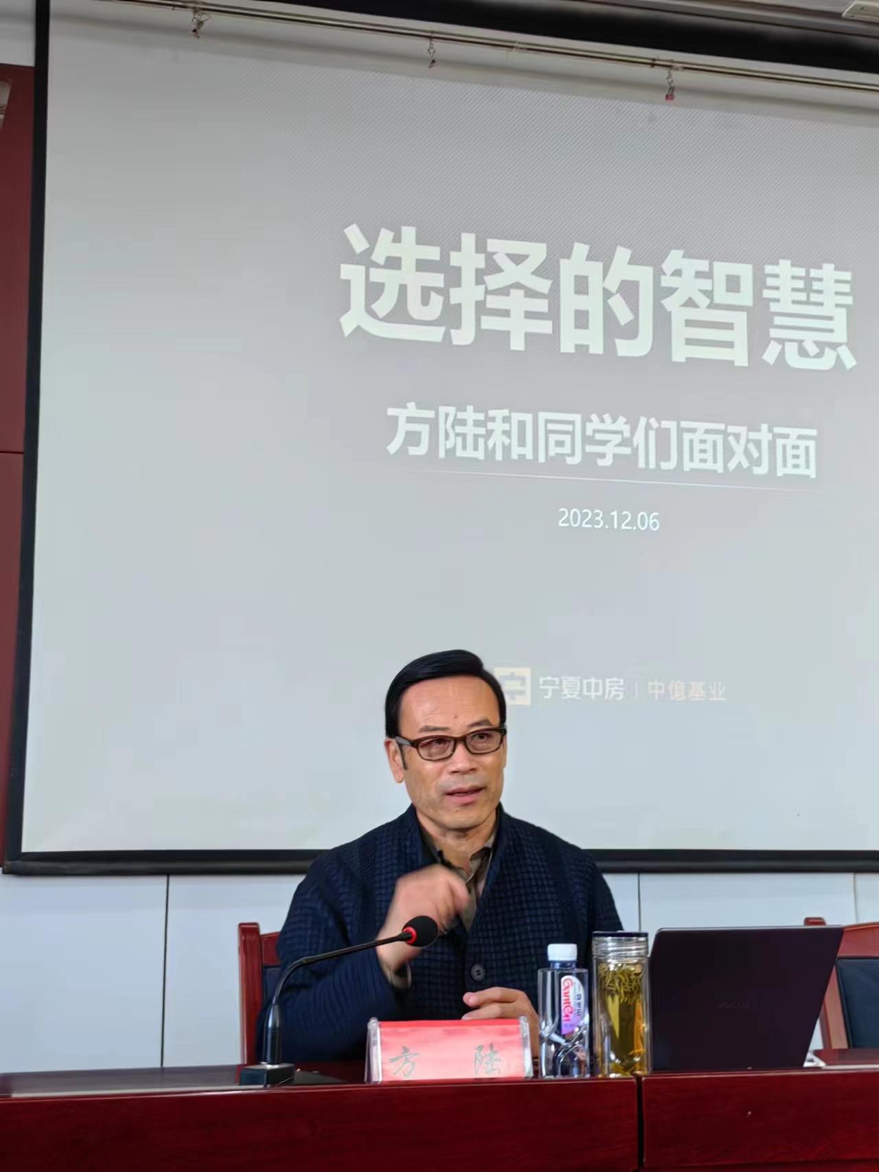 “人生不设限,才会遇见不一样的自己;强者给自己找不适,弱者给自己找舒适……我的自我总结是:我的人生不完美,但很完整;我的人生不精彩,但很多彩。”12月6日,“选择的智慧:方陆和同学们面对面”讲座在宁夏大学怀远校区报告厅举办。