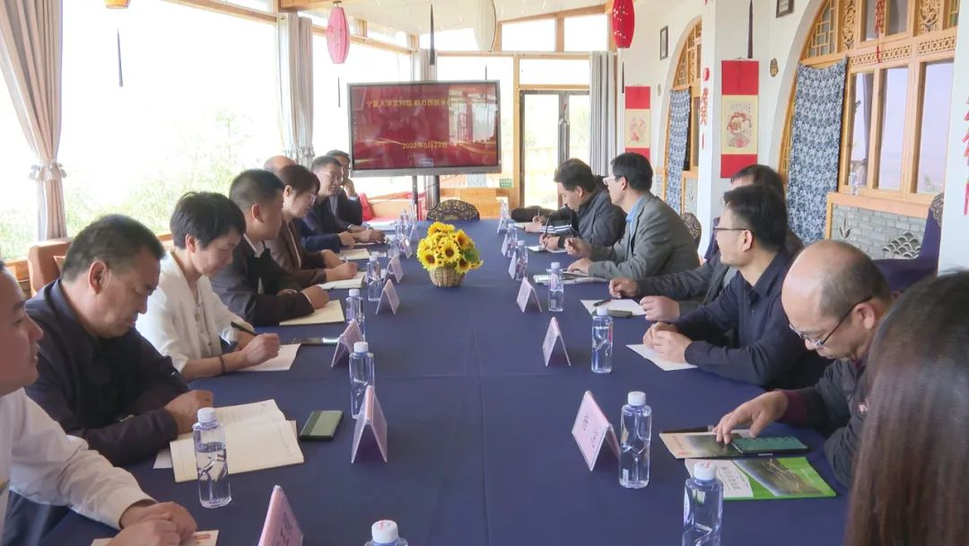 教学科研实践基地、宁夏大学音乐学院艺术教学实践基地、宁夏大学美术学院写生实践基地揭牌。胡玉冰为我县地方志办公室赠送了宁夏珍稀方志叢刊。