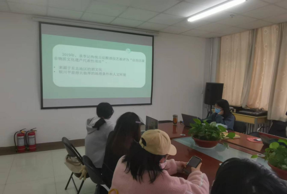 随后孟祥文同学介绍了她们小组关于宁夏非遗的商业化路径研究,以“承李记”白酒为中心进行探讨。项目将从宁夏非遗研究概述;非遗的商业化运作模式;非遗的文化推广策略研究;宁夏非遗的旅游开发;宁夏非遗保护的困境与出路五个方面进行相关的研究,并为承李记酒拍摄相关短片,以新媒体方式进行文化推广传播。
