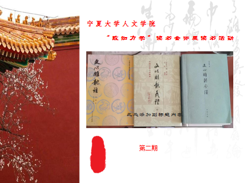 作为文学专业的学生,《文心雕龙》是非常重要的古代文献。本书除序言外共49篇,其中包括总论、文体论、创作论、鉴赏论。但是因其铺锦列绣的骈文体制,给现代人的阅读带来极大障碍,需要循序渐进。因此杨老师首先对《文心雕龙》的各个版本进行了介绍,并做了阅读顺序的讲解。