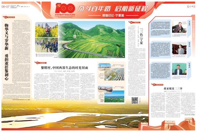 6月5日,《人民日报》《光明日报》《经济日报》“奋斗百年路 启航新征程”特刊(专版、特别报道)推出“宁夏篇”,以12个版的篇幅全面报道宁夏深入学习贯彻习近平新时代中国特色社会主义思想,立足新发展阶段,贯彻新发展理念,融入新发展格局,推动黄河流域生态保护和高质量发展先行区建设顺利开局、蓬勃展开所取得的发展成就。《光明日报》第七版《知识分子党员风采》栏目遴选报道了三位宁夏知识分子党员代表的先进事迹,捕鱼大作战正版下载