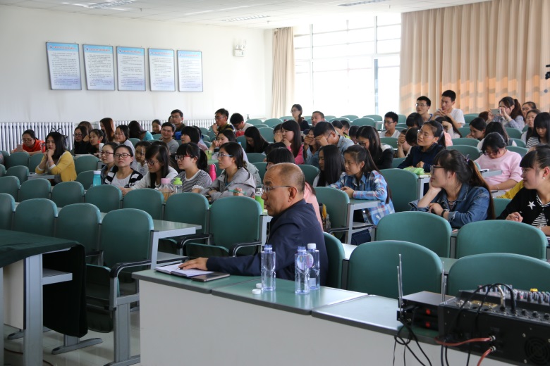 院长胡玉冰教授主持了讲演,并向陈育宁教授献花。党委书记鲁晋、副院长刘鸿雁、杨浣及部分研究生、本科生聆听了首场讲座。