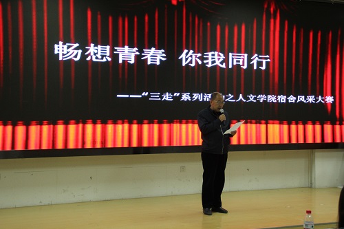 于4月12日晚在文科楼东侧报告厅举办了“畅想青春,你我同行”主题宿舍风采大赛决赛。学院党委书记鲁晋、党委副书记金玉河、副院长刘鸿雁、副院长杨浣以及教师代表参加和出席了本次活动。