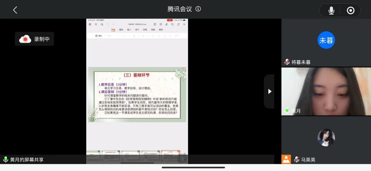 刘鸿雁老师指出黄月的分享展现出了她扎实的专业基础和对教学理论的深刻理解,具有很高的实用性和指导意义,是一次高质量的经验分享。更重要的是传达了一种勇于挑战、不断学习的精神。李九华老师认为此次分享对于学术和实践的传承都至关重要,能够让更多的学生受益,少走弯路。梁宁的分享详实且具有针对性,对于培养学生的实践能力和创新思维大有裨益。