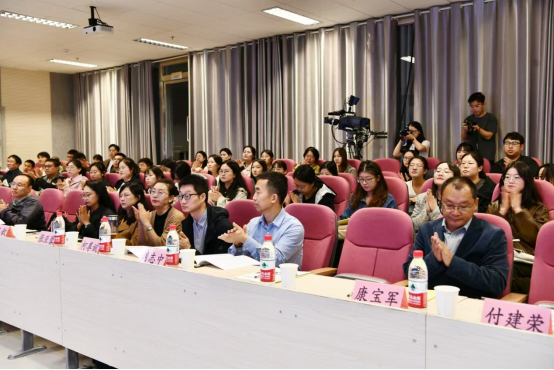 开幕式之后,中国社科院语言研究所王冬梅研究员在新闻演播大厅宣读了题为《文学阅读的语言学动因》的主旨论文。王冬梅研究员通过深入的分析和丰富的例证,探讨了文本阅读中读者的共通文学感受及其背后的语言学因素。讲坛结束后,与会学者和研究生围绕讲座内容,与王冬梅研究员进行了积极互动与深入讨论。